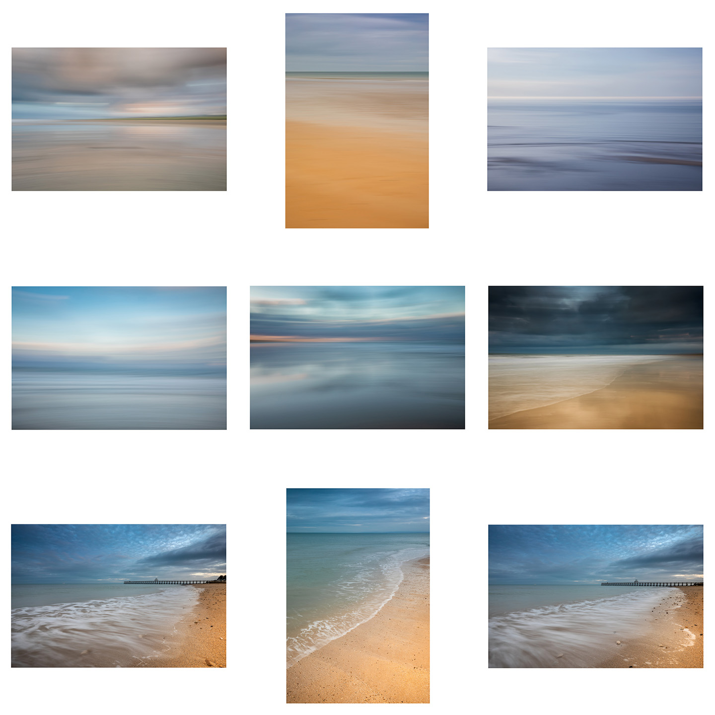 Vous découvrirez différentes inspirations, notamment mes « peintures photographiques » : pendant un temps allongé de prise de vue, la nature elle-même est le pinceau, accompagné parfois de mon appareil qui se met en mouvement pour donner vie à mes émotions. Quelques secondes ou plus pour se laisser porter par la douceur du bord de mer, l’esprit libre de vagabonder au rythme du mouvement de l’eau sur le sable.